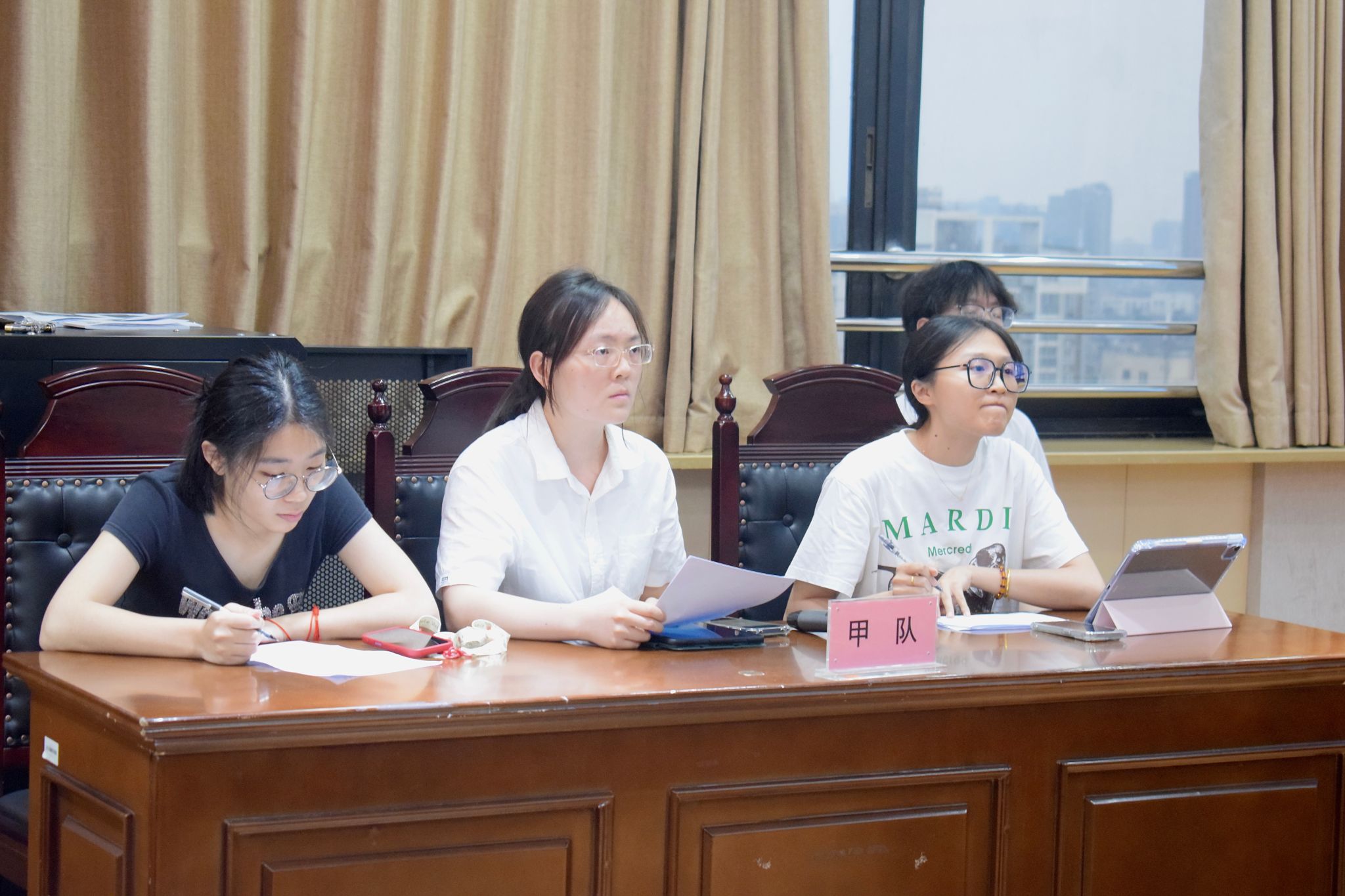 同一时间的01112赛场,率先登场的是“满天稀小队”和“乘坐公交请排队”。“满天稀小队”聚焦成都市金堂县三溪镇,探索当地创建农村物流品牌“交商邮融合”的可行性,“乘坐公交请排队”肯定该队调研广度的同时,也对其调研深入程度做出建议;接着,“乘坐公交请排队”从政策势能视角出发,阐述金堂县公交改革的惠民效果,而“满天稀小队”则对其政策执行的扩散程度和评估标准展开提问。第二场比赛中,“顶呱呱队”研究新津区“社会救助通”的推行模式并论证这一举措对提升社会救助服务可及性的效果,“三个臭皮匠队”提出对方案例缺乏公共性的问题;之后,“三个臭皮匠队”基于三鱼萌狮文化村分析了乡村文化资源的价值实现机制,而“顶呱呱队”向对方的调研结果提出疑问,指出对方理论与案例匹配度较低。几次交锋中,队员们出色的案例分析能力和临场反应赢得了评委和观众的掌声。