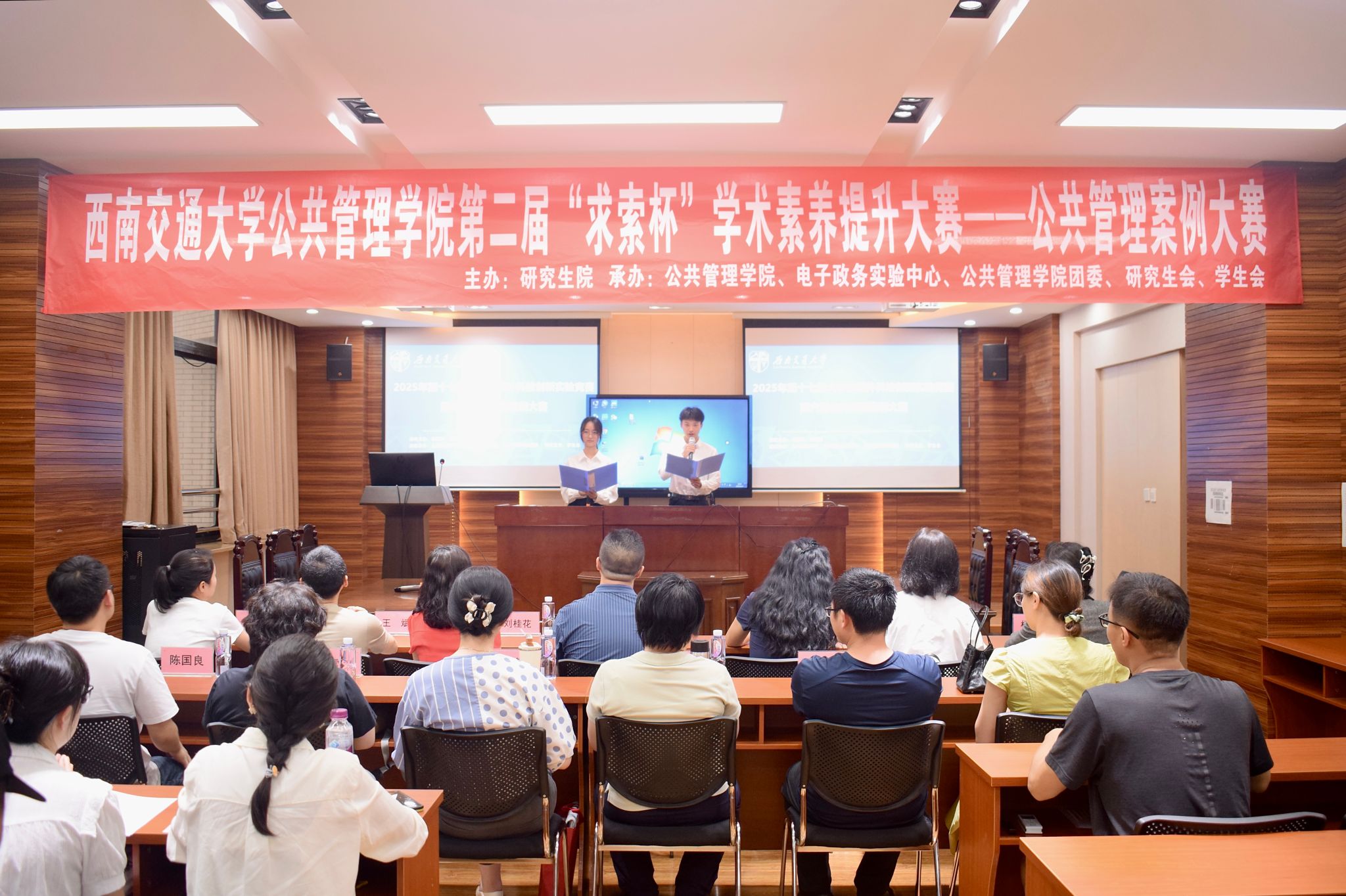 为坚持学思用贯通、知信行统一的理论学习方法,培养学生理论与实践相结合的能力,必赢电子游戏网站于2025年5月22日晚7时,在九里校区零号教学楼必赢电子游戏网站第二届“求索杯”学术素养提升大赛之公共管理案例大赛复赛。本次活动由必赢电子游戏网站研究生院主办,必赢电子游戏网站、电子政务实验中心、必赢电子游戏网站团委、学生会、研究生会承办。出席本场活动的嘉宾和评委老师有:必赢电子游戏网站副院长彭川宇,本科教学主管邓君韬,行政管理系刘桂花、杨建、徐换歌、陈国良,应急管理研究中心王振辉,公共政策系王斌,城乡公共治理系林晶晶、严敏、赵放、温雪梅、杨再苹老师,电子政务实验室赵巍老师。