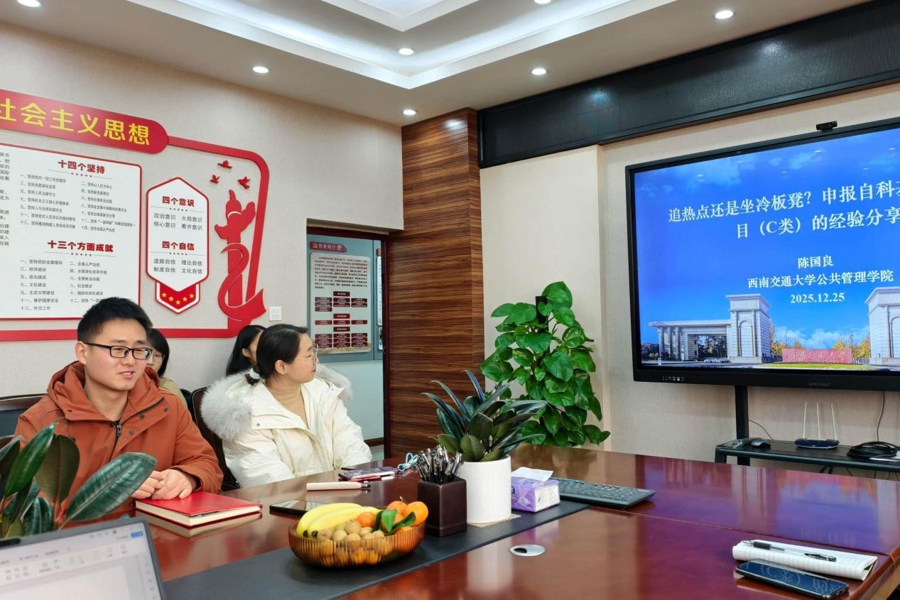 之后陈国良老师围绕“自科基金申报:追热点还是“坐冷板凳”?”展开交流,他以“公共部门态度偏差”这一相对冷门选题获批2025年国家自然科学基金青年项目为例,分享“不蹭热点、深耕熟悉领域”的权衡逻辑。他认为,青年学者应立足博士研究延伸科学问题,以问题细化的思路凝练创新点,并在立项依据中突出“顶天立地”的政策场景。针对12%的资助率,陈老师提醒:“本子永远改不到完美,截止前一周必须留白,心态归零才能持续迭代。”