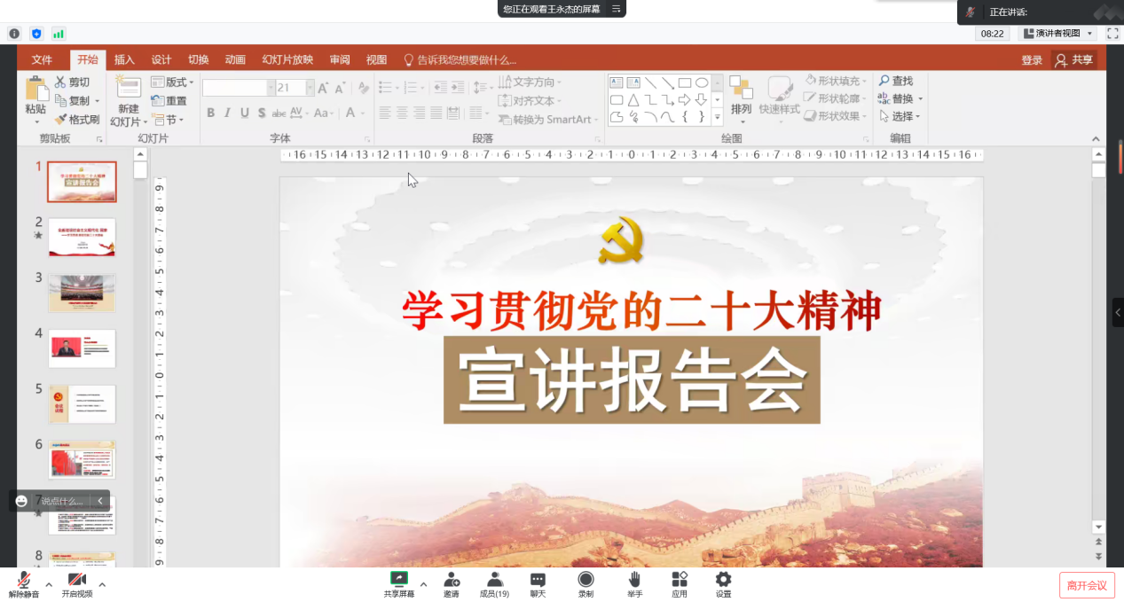 此次领学党的二十大精神,王永杰教授从7个“深刻把握”系统阐述和深入解读了党的二十大精神,带领大家全面领会党的二十大报告主要内容及主要成果,全面回顾了党的十九大以来5年的伟大成就和新时代10年的伟大变革,深刻阐明了伟大变革的里程碑意义。王院长嘱咐青年党员要认真学习领会党的二十大精神,紧密团结在以习近平同志为核心的党中央周围,高举中国特色社会主义伟大旗帜,全面贯彻习近平新时代中国特色社会主义思想,牢记空谈误国、实干兴邦,坚定信心,同心同德,埋头苦干、奋勇前进,为全面建设社会主义现代化国家、全面推进中华民族伟大复兴作出四川更大贡献!