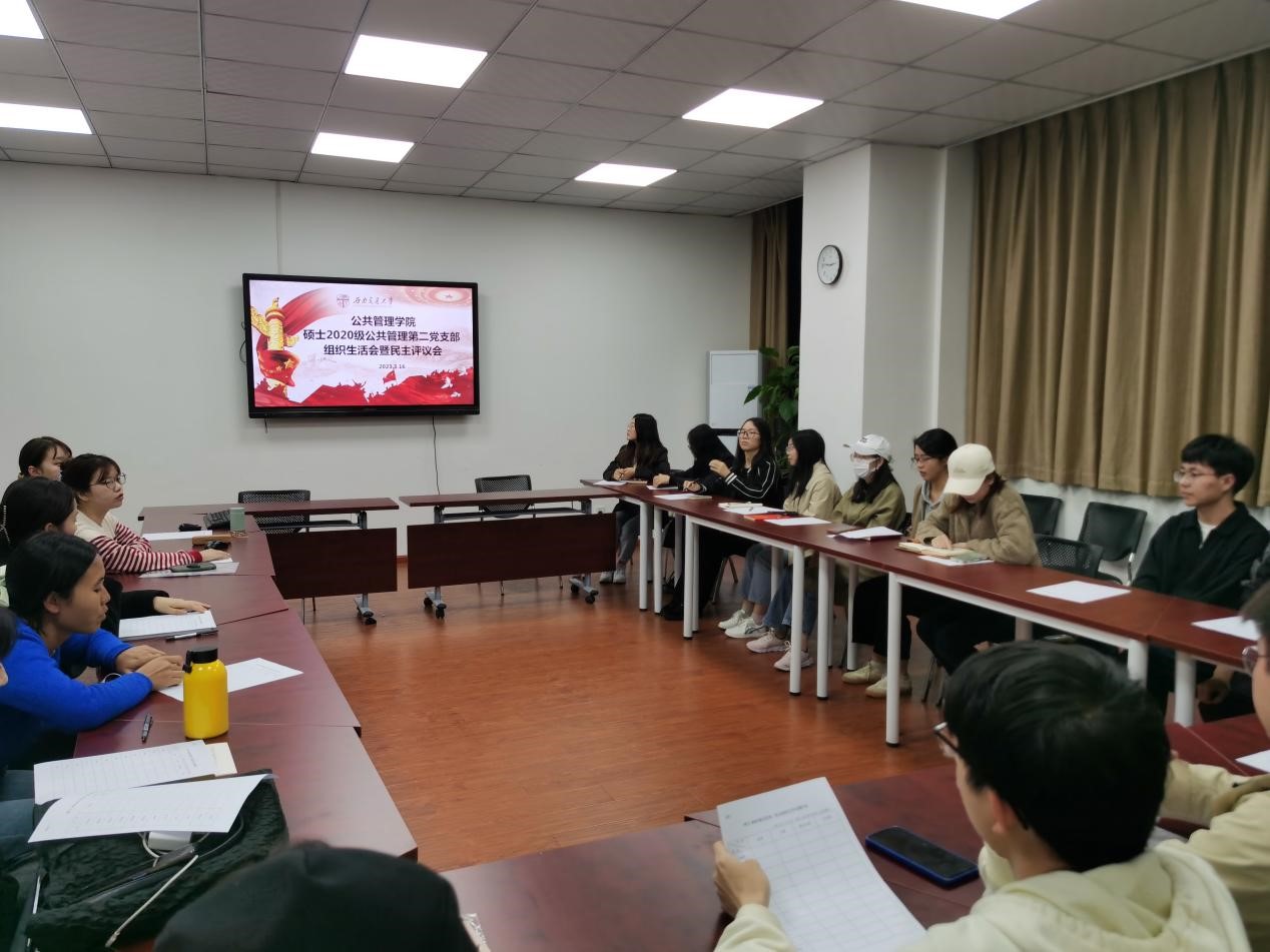 2023年3月16日21:00,必赢电子游戏网站硕士2020级公共管理第二党支部于九里校区01108会议室顺利召开了组织生活会与民主评议党员。本次会议由党支部书记范锡林同志主持,支部全体党员同志参加。