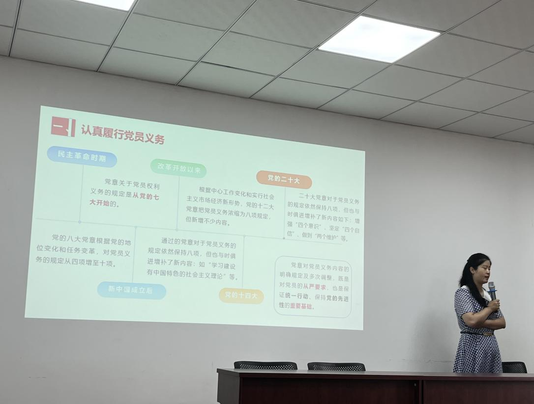2023年5月18日下午14:00,必赢电子游戏网站党委副书记余小英老师为入党积极分子作《共产党员的义务和权利》专题讲座。余书记通过两个真实案例的讲述,带领大家深入学习了党员的八项权利与义务,并表达了对同学们的殷切期望,希望同学们要学会正确行使党员权利,认真理解和领会党员的八项义务,在学习生活工作过程中严格要求自己,通过自身的努力早日成为一名合格的共产党员。