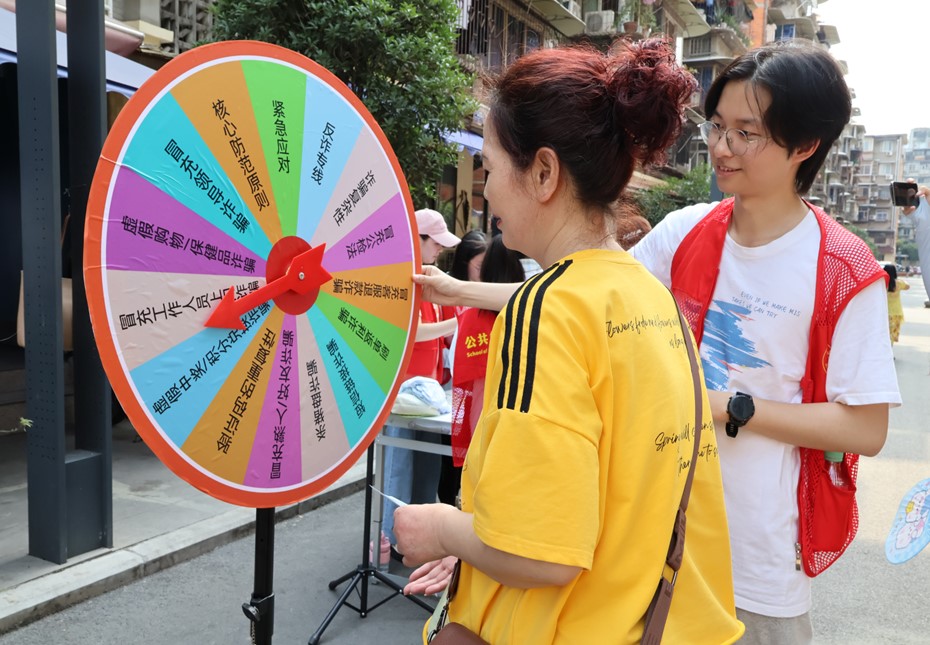 活动积极发挥青年党员和团员的示范作用,招募25名志愿者对活动内容进行了详细设计。主要包含四个环节,首先在活动前期,组织志愿者系统学习《反电信网络诈骗法》,剖析“刷单返利”“AI 换脸诈骗”等典型案例。现场活动以“易懂、易记、易用”为原则,组织志愿者手持图文反诈手册进行知识宣传。同时,通过“知识对对碰”“反诈大转盘”的活动形式向居民宣传“陌生链接不点击”等防诈口诀,使防诈宣传更加深入人心。活动同时设置情景模拟环节,通过现场演绎“冒充公检法”的诈骗场景,现场拆解“紧急转账”等话术套路让居民身临其境,提高自我防范意识。最后对所有参与宣传活动的居民发放奖品,进一步激发了居民参与活动的积极性。