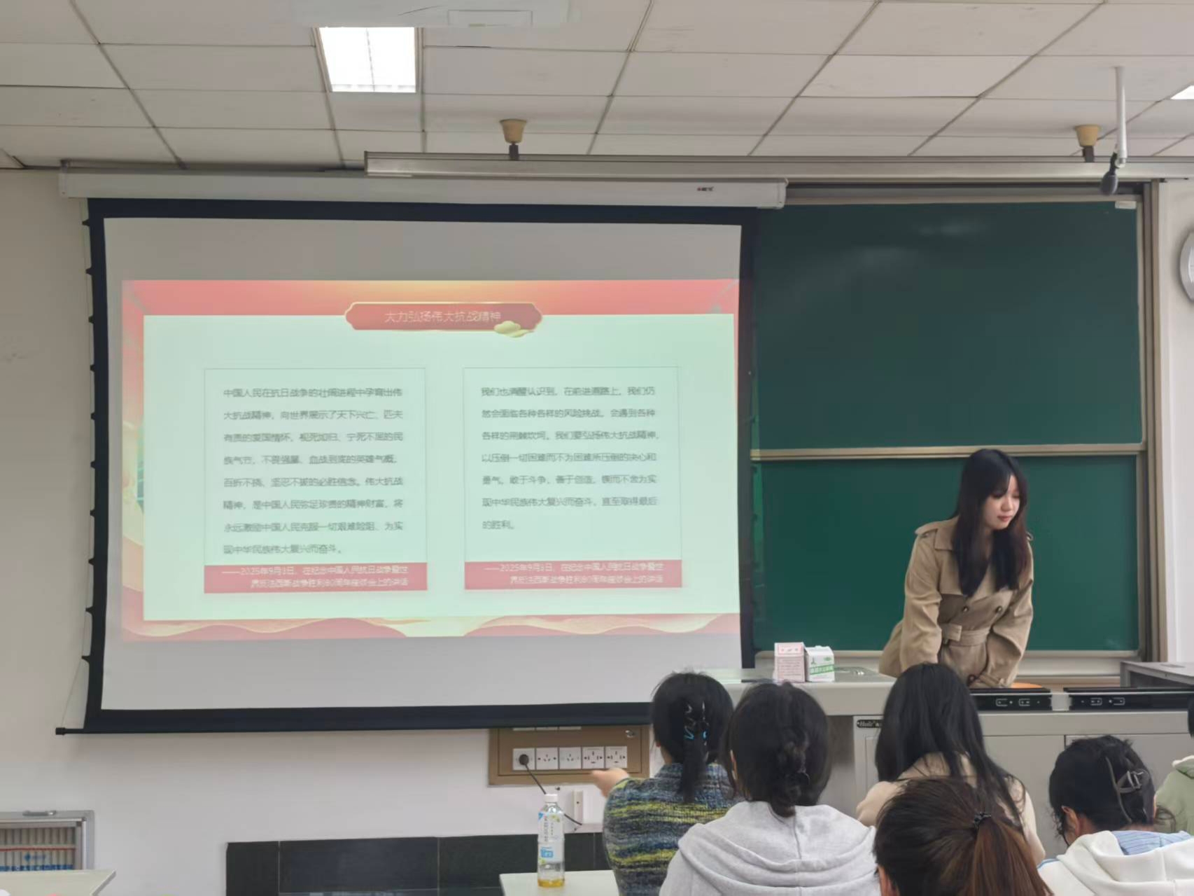 随后,全体党员集中观看了抗战纪录片《胜利》片段。影像中,革命先烈浴血奋战的壮烈场景、全国军民同仇敌忾的团结画面,让在场党员深受震撼,直观感受到抗日战争的壮阔历程与中华儿女的不屈气节,让红色记忆在光影中代代相传。观看结束后,党员们围绕 “新时代公管青年如何传承抗战精神” 展开热烈研讨。大家纷纷表示,抗战精神不是历史的陈列,而是穿越时空的精神动力,作为公共管理专业的学生党员,更应将这种精神融入专业学习与社会服务,在政策落地、基层治理等领域践行 “为民初心”。