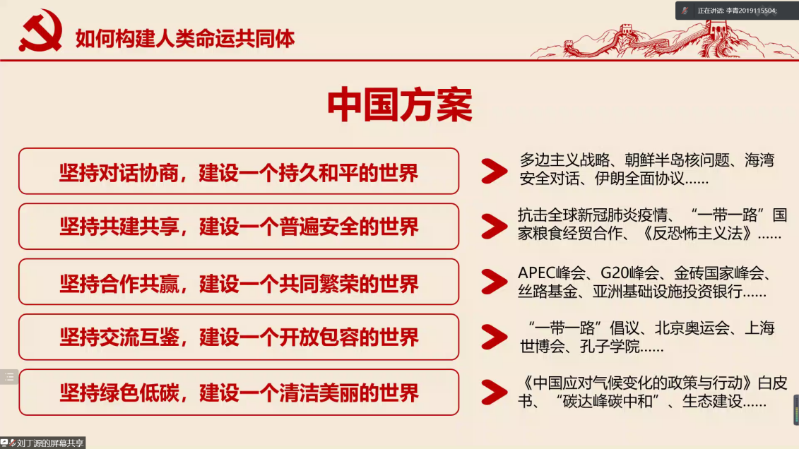 会议从四个主题进行小组汇报,分别是《人类命运共同体》、《成渝双城经济区》和《理解共同富裕》。汇报从宏观到微观,涉及了从思想到具体举措的方方面面。通过此次汇报实践活动,学院2021-04期发展对象们一起学习了党在新的历史阶段的重要思想,切身感受了新时代中国共产党的生机活力,同时也领悟到作为新时代一员自己肩负的责任。