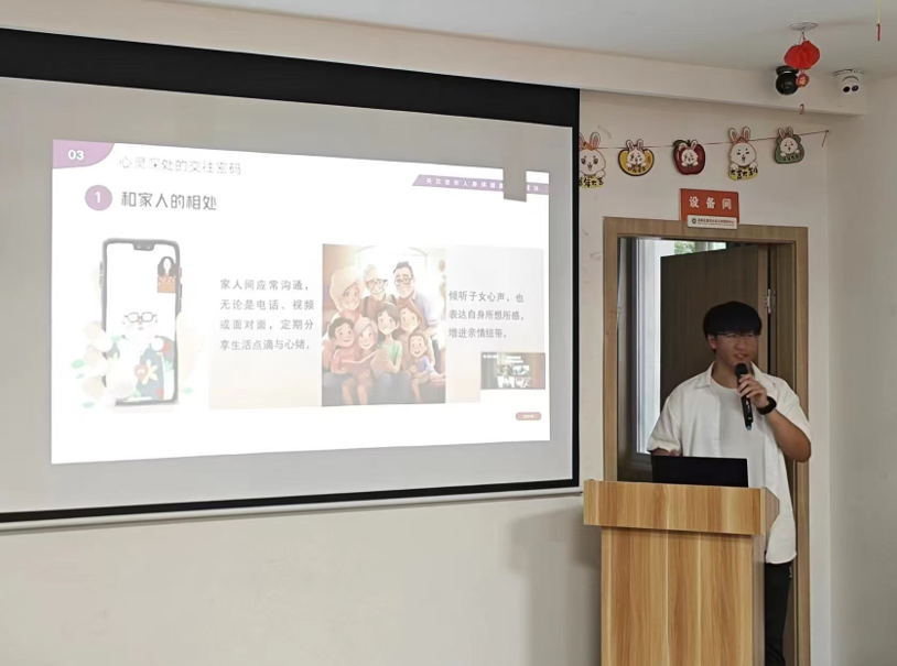 活动中,老人们唱着歌、拍着手,脸上溢满欢笑。老人们纷纷表示,这样的活动让他们感受到了来自社会的关爱与温暖,也让他们更加重视自己的心理健康。活动的最后以一段视频作为总结,志愿者们也为老人们送上礼物,一并送上最真挚的祝福。