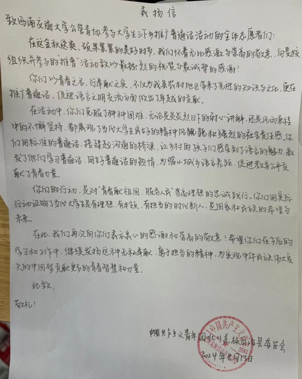 此次“声临其境,风韵羌乡”推普社会实践项目的成功,不仅在于推广了普通话的使用,更在于它强化了民族团结,乡村振兴,促进了文化多样性的尊重与保护。本次实践活动也获得了中国共产主义青年团北川羌族自治县委员会的认可。